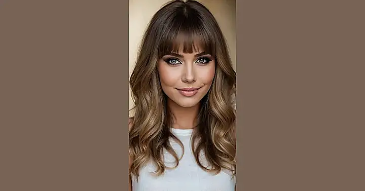 Let’s be real, winter and good hair often feel like enemies. You bundle up, pull on a hat, and emerge looking like a static-shocked science experiment. But fear not, this gorgeous wavy style with its perfectly placed bangs is here to save the day! Those cute bangs are basically your secret weapon, keeping your forehead toasty while effortlessly hiding any accidental hat-hair flattening. Plus, they look super chic, making those bright eyes pop, no matter how chilly it gets.