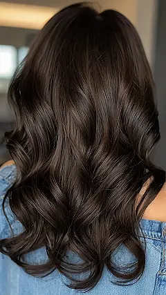 Wow, look at that gorgeous hair! It’s like a dark, delicious waterfall of chocolate – or maybe a super-shiny raven’s nest, depending on how you look at it! That rich, dark winter hair color is totally on point. It’s the perfect look for cozying up with a hot cocoa and a good book on a chilly evening. Seriously, those curls are so smooth, they make my own hair feel… well, a little bit jealous.
