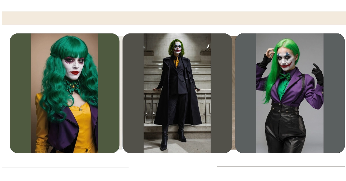 The joker energy transcends boundaries, and your costume should empower you no matter your shape. Dress in a way that makes you feel comfortable while pushing the envelope a bit! Whether it’s a looser fit or a well-fitted green corset, be fearless in expressing your inner joker. You’ll surely learn that modesty is also a playful twist!