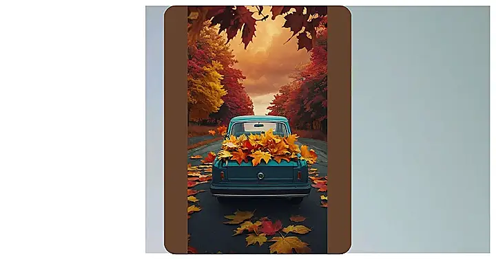 This picture is like a vintage postcard from autumn itself! Imagine taking a drive through a tunnel of fiery red and golden leaves. The car is packed with autumn’s bounty – a giant pile of leaves ready to be raked or jumped in. It’s a reminder that even though summer’s gone, autumn is here with its cozy sweaters, pumpkin spice lattes, and a whole lot of colorful fun!
