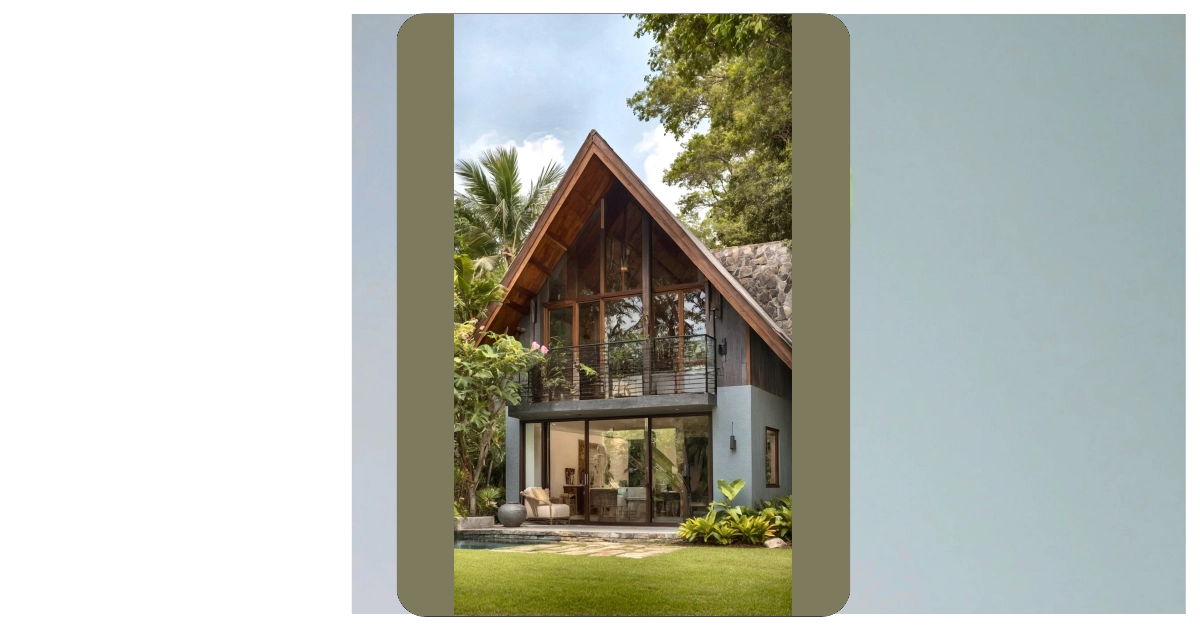 Forget those boring square houses! This tropical gem is basically a giant geometry problem solved by nature, standing tall with its super cool A-frame roof. With windows stretching all the way up, it’s like living inside a giant, fancy greenhouse, but instead of just plants, you get front-row seats to lush green trees and maybe even some squawking tropical birds trying to get your attention. Who needs a TV when your living room has a blockbuster, nature-documentary view 24/7, all thanks to some clever tropical house design that brings the outside in?