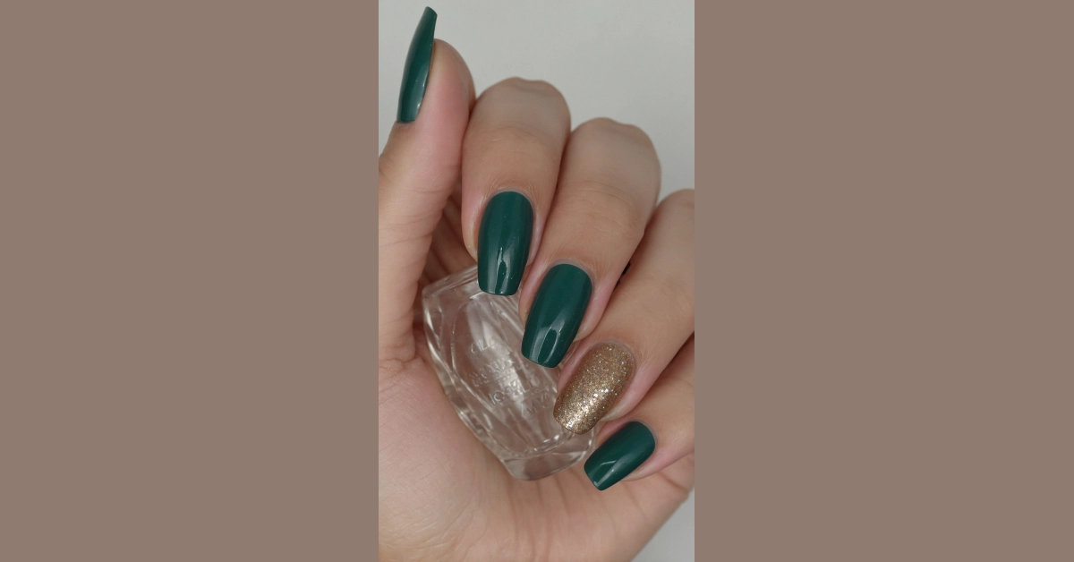 But wait, what’s that little burst of sparkle on the ring finger? That’s not just any glitter; it’s the Beyoncé of nail polish, demanding attention and making sure this whole look isn’t *too* serious. This golden glitter nail is like the secret handshake of fabulousness, turning a cool, confident green into a full-blown party on your fingertips. Whether you’re feeling a little bit earthy and a little bit extra, these green nails with their golden buddy are proof that you don’t have to pick just one vibe – you can totally rock both, and look amazing doing it!