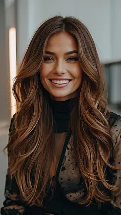 This girl’s got some serious hair game going on! Her dark blonde hair is like a waterfall of sunshine – it’s so long and wavy, you could get lost in it. And those highlights? They’re like little streaks of gold, making her hair look even more amazing. Honestly, I’m starting to think that dark blonde is the new black, because this girl is rocking it! She looks super happy and confident, maybe because she knows her hair is on point?