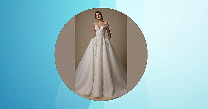 And let’s be real, this dress is basically giving major “main character energy.” That off-the-shoulder neckline? Super chic, showing off just enough while keeping it classy, which is perfect for looking great in all those selfies without having to adjust constantly. Plus, that full skirt looks so fun to swish around, even if it might secretly be trying to trip up your significant other during the first dance. In 2025, it seems wedding fashion is all about feeling amazing and looking like a million bucks, but also being able to eat cake without feeling like you’re stuck in a cardboard box. This dress is basically saying, “I’m here to slay, but also, pass the appetizers!”