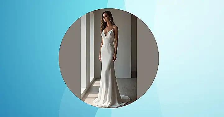 Choosing a modern minimalist wedding dress like this one means you’re basically signing up for maximum style with minimum fuss. Think about it: no giant puffy sleeves trying to steal the spotlight from your amazing smile, and no feeling like you’re wearing a fancy fortress instead of a gown. This kind of dress lets you move, groove, and actually enjoy all the food without feeling squished. It’s perfect for the bride who wants to be remembered for her effortless cool and beaming happiness, not for how many yards of fabric she managed to wrangle down the aisle!