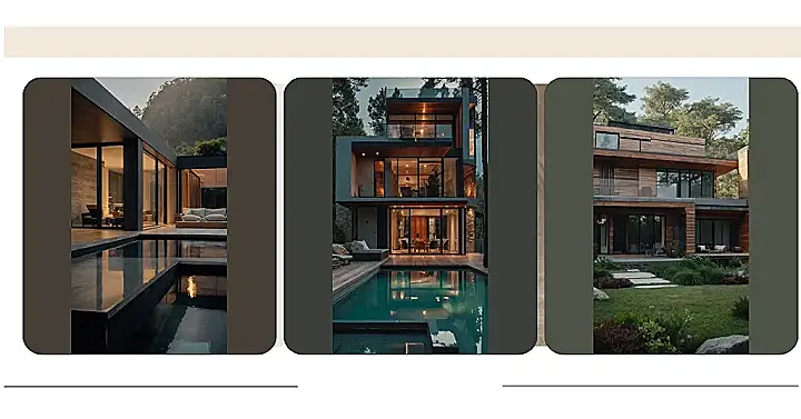 This house is a dream come true! Imagine coming home after a long day, kicking off your shoes, and stepping into this peaceful oasis. The warm glow of the lights inside makes it look like a cozy haven, and the way the water reflects the house is absolutely magical. Plus, can you imagine swimming in that pool on a hot summer day? It looks like a dream!