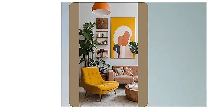Whoa, step aside boring beige, this living room is like a rainbow threw up happy! That big yellow chair looks like it swallowed a sunshine and is ready to tell you all its secrets, while the huge abstract painting is probably judging your taste in socks. You can practically hear the plants whispering about how cool they look next to that fluffy-looking couch. This is the kind of place where even doing homework feels less like a chore and more like an art project.