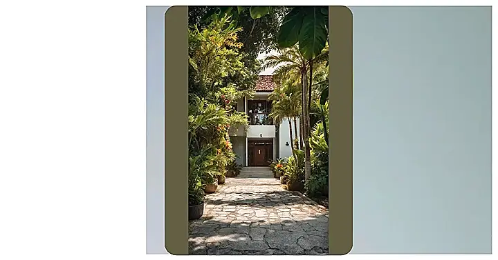 Now, let’s talk about the house itself – it’s rocking that cool, sunny vibe with its terracotta roof and bright walls, making you feel instantly relaxed. That winding stone path, surrounded by what looks like every awesome plant and flower ever, probably leads to a secret snack stash or maybe a hidden pool (a person can dream!). You could spend hours trying to name all the different plants, or just pretending you’re a secret agent navigating a very beautiful, very green maze. It’s not just a place to live; it’s a whole tropical hideout, perfect for kicking back after a long day of… well, whatever fun stuff you’d do in a house like this!