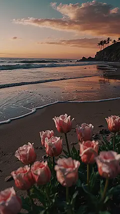 Seriously, who needs a castle when you’ve got this view? The sunset colours are gorgeous, the beach is super chill, and those tulips are practically begging to be picked (but let’s not, they look much better where they are!). It’s the kind of picture that would make even the grumpiest goblin smile, and it’s perfect for anyone who loves a little bit of dreamy beauty to brighten up their day, or their phone screen, or whatever. It’s basically the epitome of a relaxing, beautiful escape!