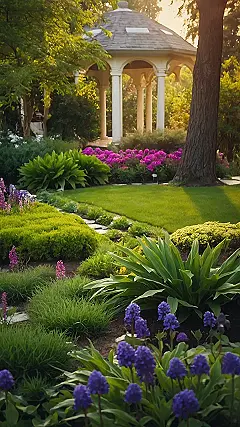 This picture makes you want to grab a good book, a picnic basket, and head straight to the park! It’s got everything you need for a dreamy escape. You can almost feel the soft grass beneath your feet and smell the sweet perfume of the flowers. Imagine yourself taking a stroll along the path, surrounded by lush greenery and beautiful blooms, and stopping for a moment to admire the elegant gazebo in the distance.