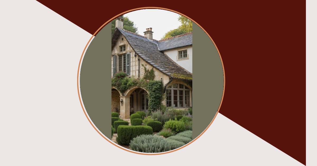 Beyond that immaculate lawn, the borders explode with a party of colors and textures, making it clear this French country garden isn’t just about the green stuff. You’ve got vibrant red shrubs competing for attention with fluffy silver-blue plants and bursts of bright white flowers, all looking like they’ve been perfectly placed by an artist – or maybe a very patient gardener with an excellent eye for drama. There’s even a cool, rustic stone path winding through it all, practically begging you to explore and maybe discover a hidden pastry chef (a French garden needs croissants, right?). It’s so beautiful, it makes you want to ditch your screen time and just soak in all that natural beauty, or at least take a thousand selfies.