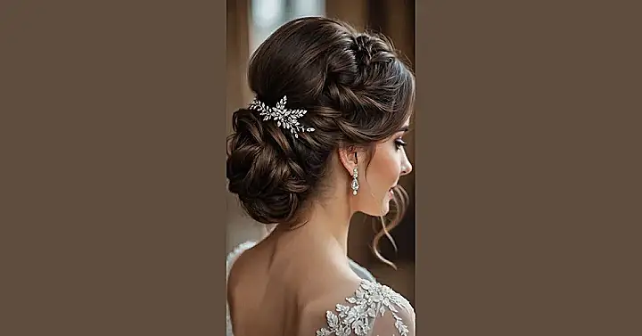But wait, there’s more sparkle! That gorgeous leaf-like hairpiece isn’t just sitting there; it’s basically throwing a tiny glitter party in her hair, perfectly complementing those dazzling drop earrings. You know how you feel amazing when you get a new outfit? Well, this whole look screams ‘I’m ready to walk down the aisle and absolutely glow!’ It’s the ultimate ‘romantic wedding hair’ vibe that makes you feel like you could float on air, even if your feet are secretly cramping from those fancy shoes. This hair is so on point, it might just inspire everyone to finally learn how to braid!