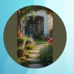 This garden is so magical, you’d think it was straight out of a fairytale! With a cozy little house covered in green, like a mini-forest, and comfy white furniture, it’s the perfect place to sip lemonade and dream about adventures. The little stone path leading up to the house makes you feel like you’re walking into a secret world, where everything is peaceful and beautiful.