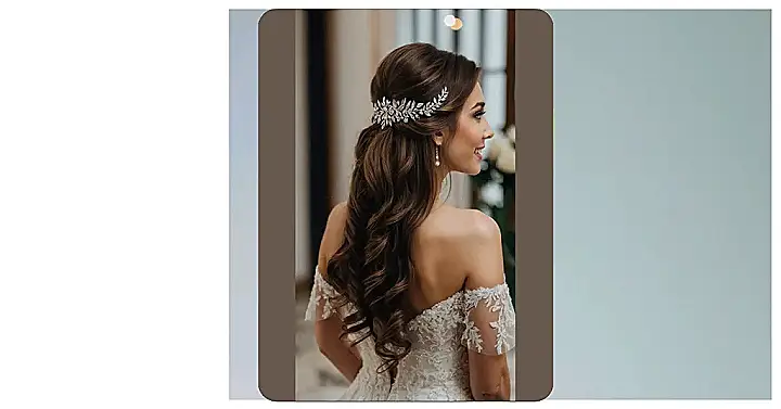 Feeling like royalty on your big day? Totally possible, starting with your hair! Check out this awesome hairstyle in the picture – it’s got these beautiful, flowy waves that look like they just tumbled down from a cloud in a fairy tale. And let’s not forget that sparkly hairpiece! It’s like a little bit of magic holding everything perfectly, making you feel like you just stepped out of a storybook, maybe without the part where you have to clean a chimney or fight a dragon (unless your mother-in-law is scary, kidding!).