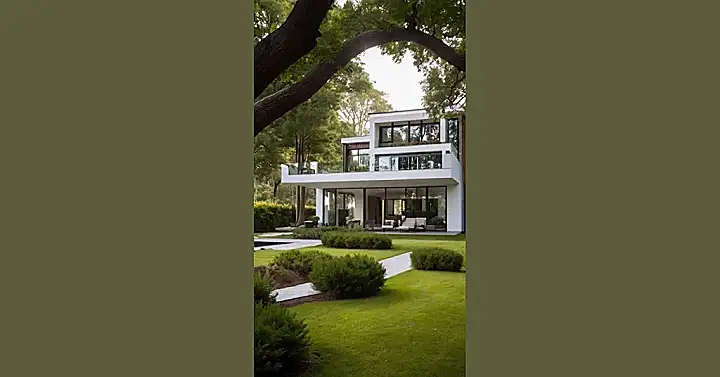 Forget your grandma’s cozy cottage, this is a 2.0 version! I mean, where’s the thatched roof and overgrown rose bushes? Replaced by sleek lines, glass railings and manicured lawns. But hey, who are we kidding? We’d all trade in a squeaky porch swing for this modern marvel in a heartbeat. Just imagine the Instagram photos you could take! #WhiteCottageGoals #ModernLiving #FancyPantsLife