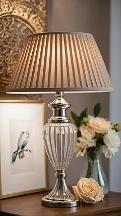 This elegant lampshade isn’t just about dimming the lights; it’s an absolute team player, making sure the entire scene – with those fresh roses, the cute bird art, and even that cool golden wall decor – looks like it walked straight out of a magazine. It’s not yelling for attention, but it’s definitely flexing its aesthetic muscles, showing how a neatly pleated design can turn a regular lamp into the most sophisticated glow-up artist in your house. It probably thinks it’s the reason everything looks so put-together, and honestly, it might not be wrong!