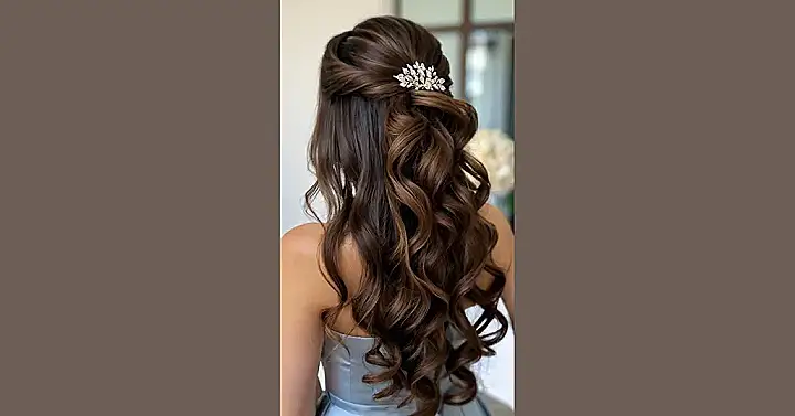 Ever wondered how to look amazing without spending hours in a salon? This simple bridesmaid hairstyle is like the “effortless cool” of wedding looks! It’s basically a half-up, half-down ‘do with a sparkly accessory that’s easy to rock and won’t steal the bride’s thunder. Think of it as the ultimate “I woke up like this” (but actually spent 20 minutes on it) hairstyle that still looks totally put-together.