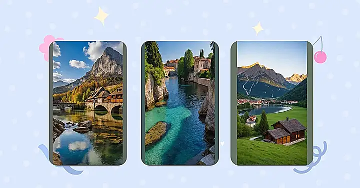 Look at that little wooden house tucked into the hillside! It’s like something out of a fairy tale, probably filled with warm blankets and zero Wi-Fi signals (which might actually be a good thing, shocking, right?). Down by the lake, there’s even a cute town, probably selling amazing pastries. If you ever dreamed of trading your bus route for a mountain trail or swapping noisy streets for the sound of gentle waves, places like this are waiting in Europe, ready to show you nature that’s seriously flexing its beautiful muscles.