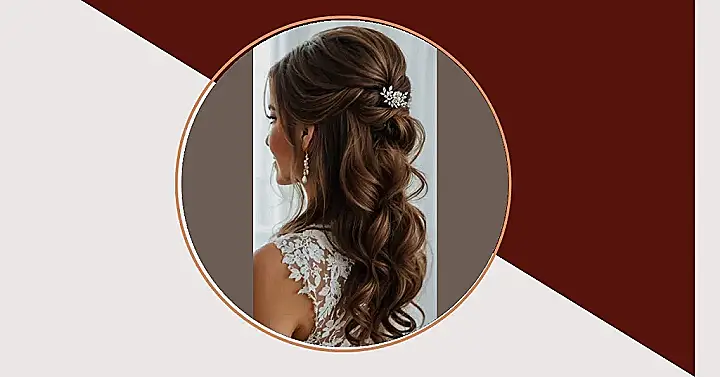 Just look at that fancy hairpiece! It’s not just a clip; it’s like a sparkly, leafy crown designed to make sure all eyes are on her, or at least on her fantastic hair. This bride hairstyle perfectly combines classic waves with a modern twist, probably making every other hairstyle in the room feel a little bit jealous. It just goes to show that a great bridal look isn’t just about looking fancy; it’s about looking absolutely stunning and feeling like a queen, maybe even doing a little hair flip on the dance floor!
