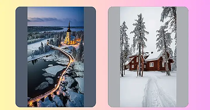 This picture is so perfectly winter-wonderland-ish, it feels like it was specifically crafted in a lab to be the coolest “Finland wallpaper” ever. You could totally slap this on your phone background and instantly make everyone jealous of your virtual trip to the Arctic circle. It’s got everything: glowing lights, crunchy snow vibes, and a church that demands attention. Just try not to get lost staring at the pretty lights and forget you were supposed to actually, you know, use your phone for something important.