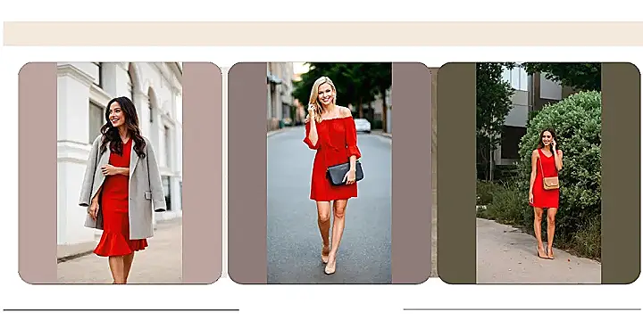 Now, let’s crank up the glam factor for our night classy adventures. A gorgeous red cocktail dress adorned with shimmer or sequins can take you straight into party territory! Pair it with a statement clutch and some fierce make-up for a look that’s sheer wow! Whether it’s a birthday bash or a night out on the town, you’ll be radiating elegance and style, the life of the party in your glowing red!