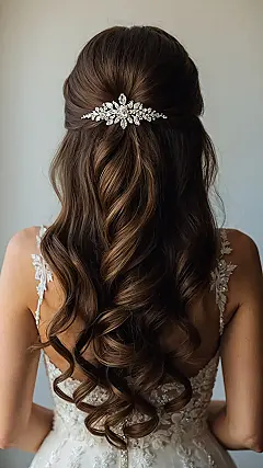 Check out the style in this picture! It’s got that half-up, half-down thing going on, with bouncy waves that look ready for a dance floor. And seriously, that sparkly hairpiece is like a crown for your head – instant princess vibes! Whether your hair is naturally straight, wavy, or curly, there are tons of ways to style it for a special occasion. It’s all about finding a look that makes you feel confident and maybe adding a little bling to make it extra special.