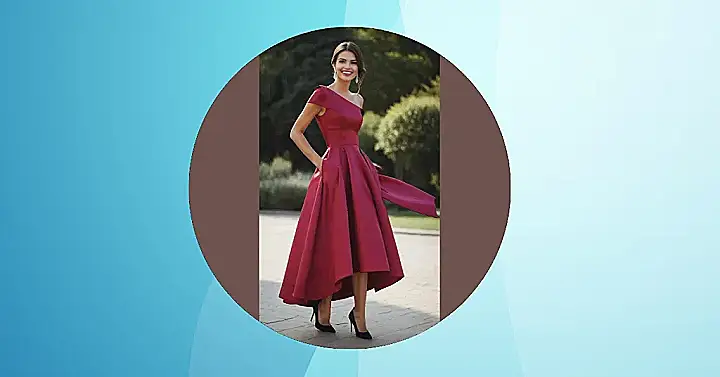 This isn’t just any red dress; it’s practically a superhero cape in disguise for a fancy night out! Our smiling friend here looks like she’s about to conquer the dance floor or at least win the ‘best dressed’ award without even trying. That rich maroon color and flowy skirt are screaming “major evening event,” making you feel all kinds of glam without having to wear a stuffy gown you can barely breathe in. She’s got that perfect “I woke up like this, but also slayed this dress” vibe that makes any women’s evening dress look effortlessly cool.