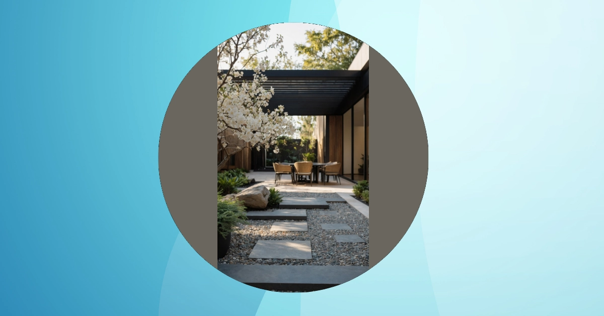 Walking into this garden feels less like dodging pigeons in Venice and more like chilling at a super-stylish modern villa in Tuscany. See those cool, big stepping stones? They totally guide you through like your own personal runway, minus the paparazzi. And those plants? They’re standing tall and looking sharp, probably whispering “Ciao!” to each other when no one’s listening and secretly wishing they were growing lemons for actual limoncello.