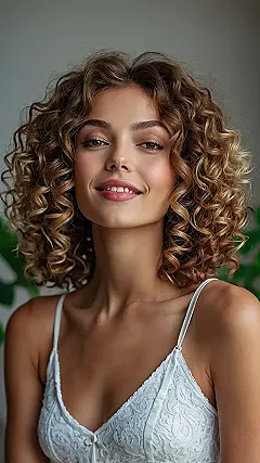 Check out that hair! It’s got bounce, it’s got volume, and it looks like it might just start doing a little dance on its own. Medium length curly hair like this is basically the coolest accessory you can have. It doesn’t just sit there looking pretty; it brings a whole vibe to the party. It’s like each curl has its own little personality, ready to spring into action or maybe just hang out and look effortlessly fabulous. Dealing with curls can be a wild ride, but when they look this good, it feels like winning the hair lottery.