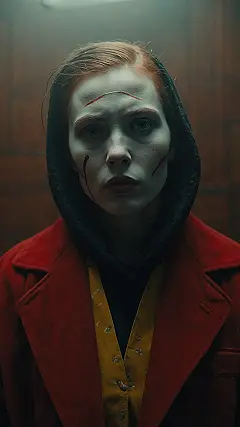 This image shows a person wearing a white mask that has red paint on it, as if someone tried to cover up their eyes. The mask doesn’t quite cover their whole face, and it even looks like it’s starting to crack a little bit. This makes it look like they’re trying to be super mysterious and cool, but it’s kind of failing. It’s like they’re trying to say, “Don’t look at me, I’m too cool for you.” But the way the mask is falling apart just makes it funnier!