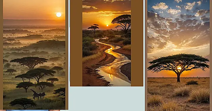 Checking out this photo is like scrolling through the world’s best screensaver, but way cooler and totally real. You’ve got these amazing acacia trees that look like they’re trying to do yoga poses or maybe just showing off their perfect umbrella shapes in the golden light. And seriously, that little waterhole is probably the most popular spot in the whole savanna for grabbing a drink, like the ultimate VIP lounge for animals. This kind of picture just screams beautiful Africa photography because it shows off how stunning nature can be, even with just some trees, water, and killer light.