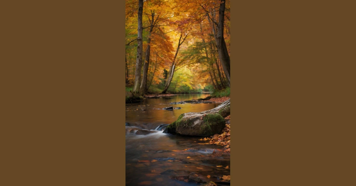 This picture is like a cozy autumn day in a storybook! The trees are all dressed up in their prettiest fall colors, like they’re getting ready for a big costume party. The water in the stream is so peaceful and calm, like it’s whispering secrets to the leaves as they float down. It’s the perfect spot to curl up with a warm drink and watch the world go by, especially if you’re trying to escape from the chaos of schoolwork or busy family life.