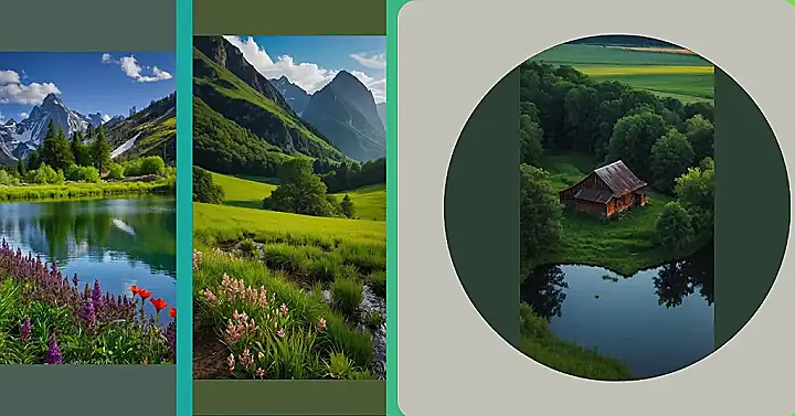 This picture is like a postcard from a peaceful place! There’s a little wooden cabin nestled right in the middle of a green field, and it’s surrounded by tall trees that look like they could whisper secrets to anyone who listens. It’s so calm and quiet, you can practically hear the wind rustling through the leaves. You can just imagine sitting on the porch, watching the sunset paint the sky in gorgeous colours while sipping on lemonade.