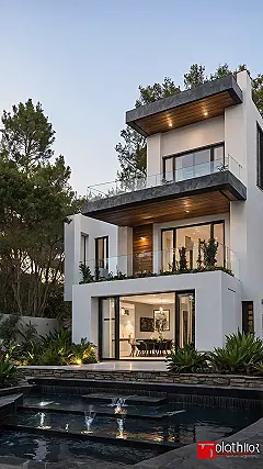 Wow, check out this place! It looks like someone took all the coolest building blocks ever and made them into a house, complete with what looks like a mini-waterfall situation in the pool. When you look at ‘beautiful house plans’ online, this is the kind of thing that pops up and makes you think, “Yep, that’s the one I’ll buy… right after I invent flying cars and become a billionaire.” Seriously though, having a balcony that looks like it’s floating in the air? That’s just showing off, in the best possible way.