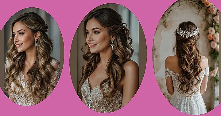 Forget about those questionable hair experiments you tried in middle school; this is the kind of hair magic we’re talking about for 2025 brides! Just look at this gorgeous half-up, half-down style. It’s got those perfect bouncy waves that say, “I’m effortlessly chic” instead of “I wrestled a hairbrush and lost.” Plus, keeping some hair off your face means less chance of it sticking to your lip gloss when you’re busy smiling for a million photos. This look, with its soft curls and elegant sweep, is truly a top contender for the best bridal hairstyles of the future!