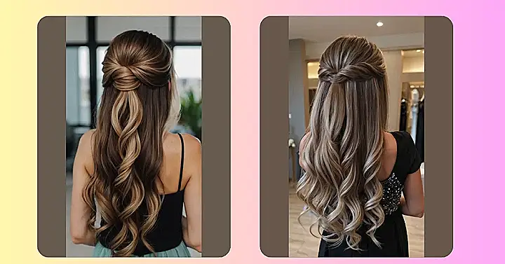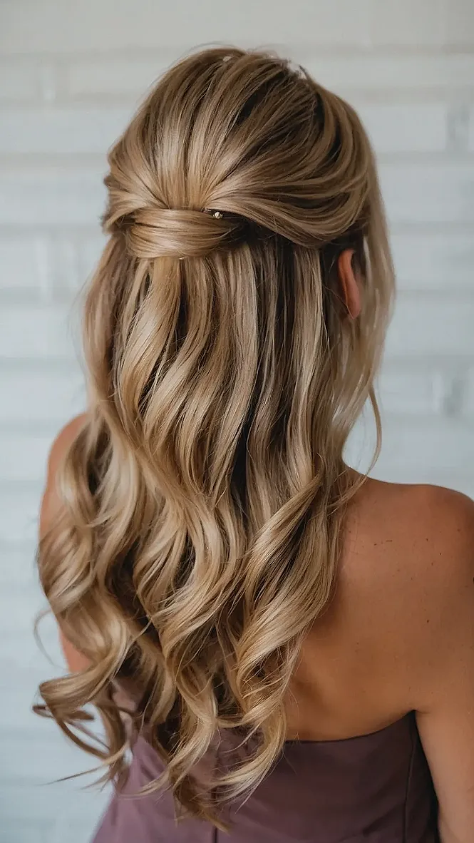 To kick things off, let’s embrace the effortless charm of half-up, half-updos! They offer a beautiful balance between polished and playful. This style accentuates long and medium-length hair with stunning volume and dimension. You can easily dress it up with some sparkly hairpins or a flower crown, turning heads and stealing hearts all day long!