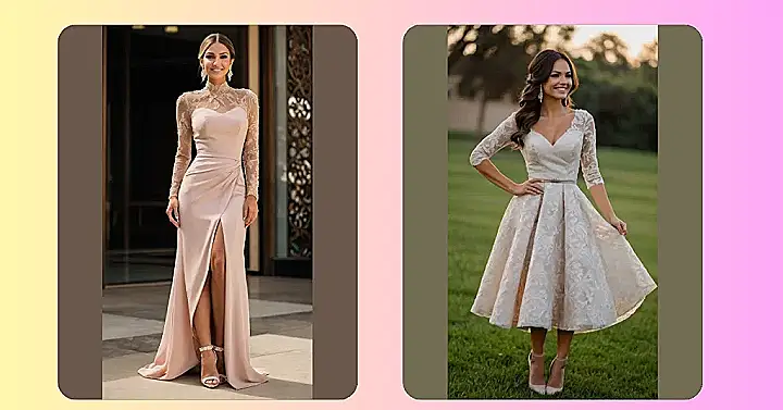 That dress is seriously stunning! Imagine yourself gliding into a wedding, looking effortlessly chic in this dusty rose masterpiece. The pretty lace details add a touch of elegance without being too over-the-top – you’ll be the picture of sophistication, but still leave the spotlight where it belongs: on the happy couple! Plus, those sleeves? Total boss move. They’re perfect for a slightly cooler day or just for feeling like a total queen.