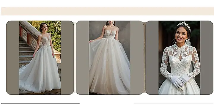 Planning a wedding? Picking a dress is like choosing your spirit animal, but way fancier! Check out this dreamy long dress. It’s got sleeves with lace that look like they were drawn by fairies, and the skirt? Total princess vibes. Just imagine twirling around in that thing during your first dance – you’ll be the star of your own rom-com!
