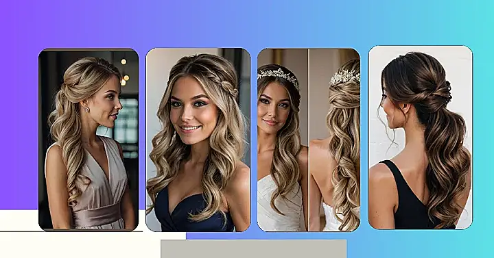 And the best part? These looks are actually pretty easy to achieve. No crazy intricate braids or updos needed – just some curls and a little bit of styling magic! Plus, the accessories add that extra touch of glam without being over-the-top. So whether you’re going for a fairytale wedding or a more modern celebration, these hairstyles are total winners!