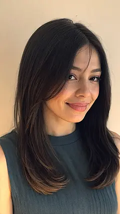 This photo just screams “good hair day”! That long hair with subtle layers isn’t just sitting there; it’s practically having a party on her shoulders. The layers give it that fantastic bounce and volume, making it look super lively instead of just, well, long. It’s like each strand got a memo to look effortlessly cool and frame that radiant smile perfectly, giving off those confident, easygoing vibes we all wish we had every morning.