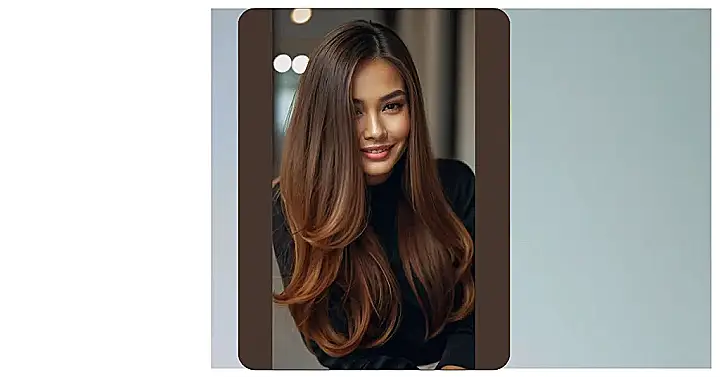 The picture shows a girl with hair so smooth and shiny, it looks like silk! Seriously, her hair is like a waterfall of luxurious brown silk. You could probably bounce a quarter off those strands! It’s the kind of hair you just want to run your fingers through, even if it might be a bit weird to do that in public.