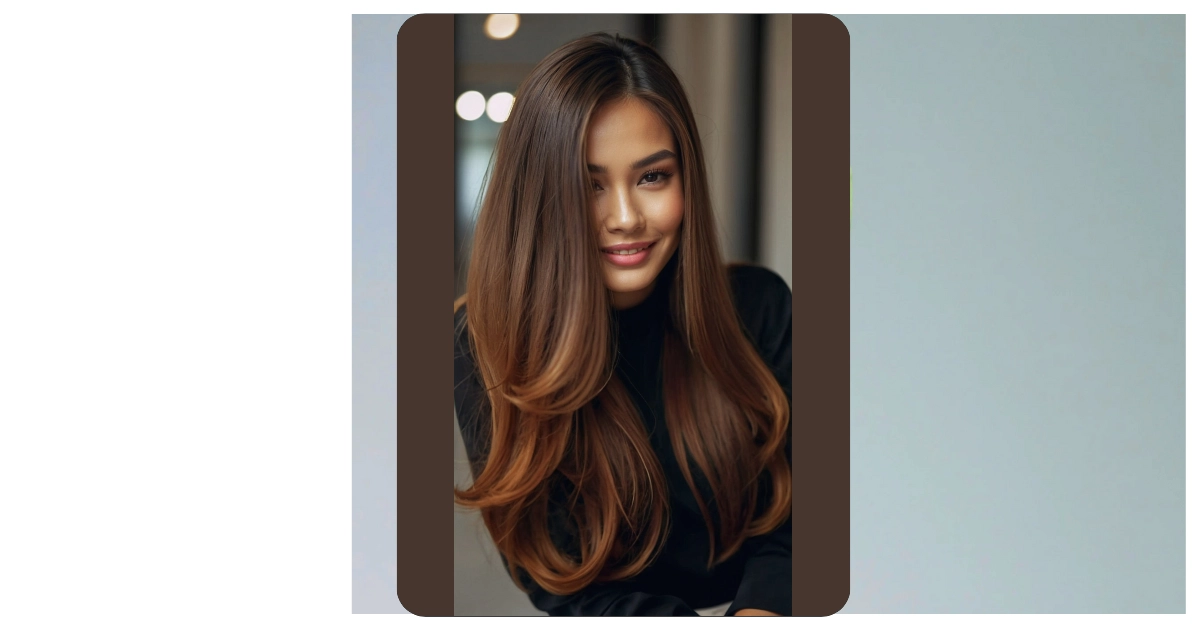 The picture shows a girl with hair so smooth and shiny, it looks like silk! Seriously, her hair is like a waterfall of luxurious brown silk. You could probably bounce a quarter off those strands! It’s the kind of hair you just want to run your fingers through, even if it might be a bit weird to do that in public.