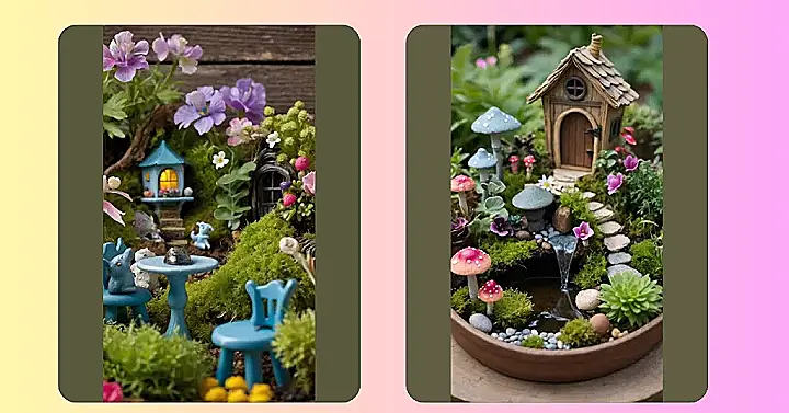 Imagine shrinking down and hanging out in this place! Seriously, who wouldn’t want to live in a cozy little house next to a waterfall that’s, like, the perfect size for a fairy spa day? It’s like a super chill, super cute mini-world where your biggest problem is deciding which mushroom to chill under. This is exactly the kind of fairy garden inspiration you need to ditch your textbooks and get creative.