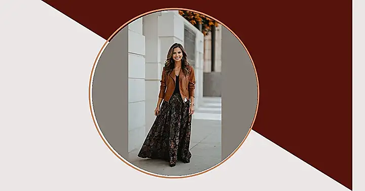 This outfit is the epitome of fall fashion! Imagine yourself walking down the street with that crisp autumn air nipping at your nose, looking totally stylish in a brown leather jacket and a flowy floral skirt. This look is just like a pumpkin spice latte – warm, cozy, and totally delicious!