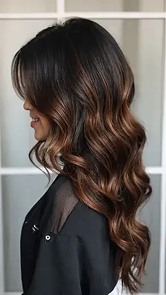 This girl’s hair is like a delicious chocolate chip cookie – it’s got that rich, dark base that’s totally satisfying, but then there are those warm, caramel highlights that just make you want to take a bite! It’s the perfect way to transition from the summer sun to the cooler fall weather, and it’s guaranteed to make you feel like a total babe.
