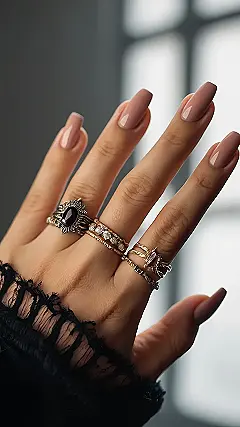 These nails are like the perfect fall outfit ‚Äì they’re cozy and cute without being too over-the-top. They’re subtle enough to wear every day, but still make a statement. And with all those rings, they’re like a little bit of extra sparkle for your day. It’s like wearing your favorite sweater and your best pair of jeans ‚Äì simple but stylish!
