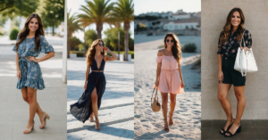 This outfit board is all about cozy vibes and comfy clothes! Look at those sweaters – perfect for a crisp autumn day. You can totally rock these outfits at your next family photo shoot. Imagine how cute everyone will look all bundled up! It’s like a warm hug in every photo.