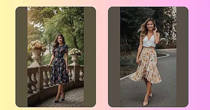 Check out this fashionista, rocking a gorgeous floral dress that looks like it stepped right out of a fancy garden magazine! She’s absolutely glowing, ready for a stroll through the poshest park. But when the keyword is ‘picnic outfit,’ those killer heels and that perfectly tailored dress might be getting a little too close to nature. One step onto soft grass, and you might find yourself doing an unexpected ballet move as your heel disappears, turning ‘chic’ into ‘stuck!’