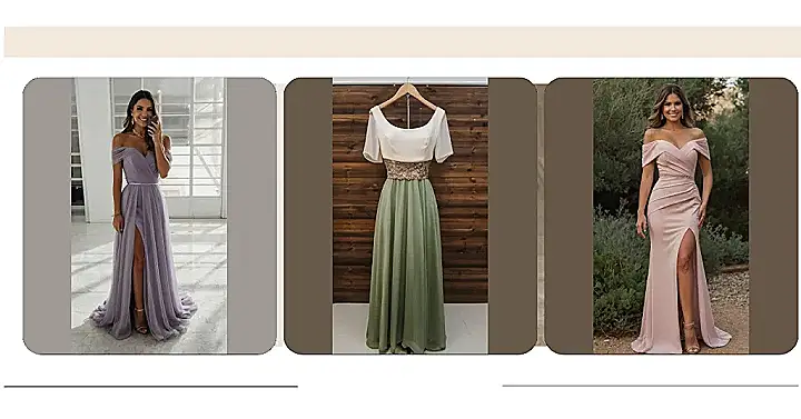 This lavender dream of a bridesmaid dress is so gorgeous, you’ll be tempted to steal the show! The off-the-shoulder style and that stunning high slit are total head-turners – imagine all the compliments you’ll get. It’s like something straight out of a fairytale, but way more comfortable for dancing the night away at the wedding. Forget frumpy bridesmaid outfits; this is the perfect blend of elegance and fun.