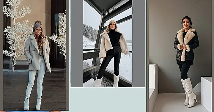 **Paragraph 1:** BRR! Winter’s here, and let’s be honest, it’s freezing! But this picture shows how to conquer the cold in style. Check out this awesome outfit – that fluffy, creamy coat is practically begging to be snuggled into, and those white jeans and boots are seriously chic. It’s like a snowy dream come true! Forget shivering – this look is all about staying warm AND looking super fashionable. Imagine strolling through a winter wonderland (maybe with some fake snow trees like the ones in the pic!) feeling totally cozy and confident.